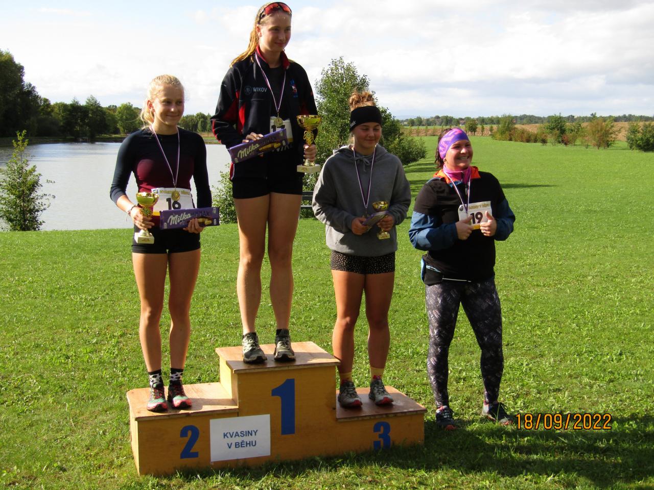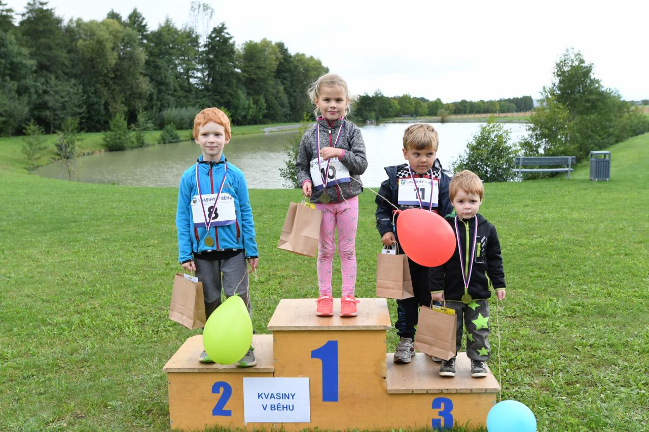 Již 4.ročník závodu Kvasiny v běhu přivítal malé i velké sportovce v neděli 18.září 2022 v areálu obecního rybníka. Nejmenší závodníci se vydali na modrou, balónkovou trasu kolem stromů u rybníka 300m dlouhou. Děti starší 6-ti let na zelenou, která měřila 1,3km. Na ty zdatnější sportovce, zejména v zastoupení členů klubu Wikov SKI Skuhrov nad Bělou, čekala trasa žlutá s délkou 3,5km přes les Boroviny nebo červenou, která byla dlouhá 5km a vedla podél lesa Boroviny na Hamernici a zpět Kvasinami k rybníku. I přes nepříznivou předpověď počasí, která hlásila chladno a déšť si nakonec všichni užili i slunečné oblohy a pouze pár kapek v cíli, kde si ti nejrychlejší odnesli krásné poháry a každý účastník i sladkou odměnu. Děkujeme všem za účast!