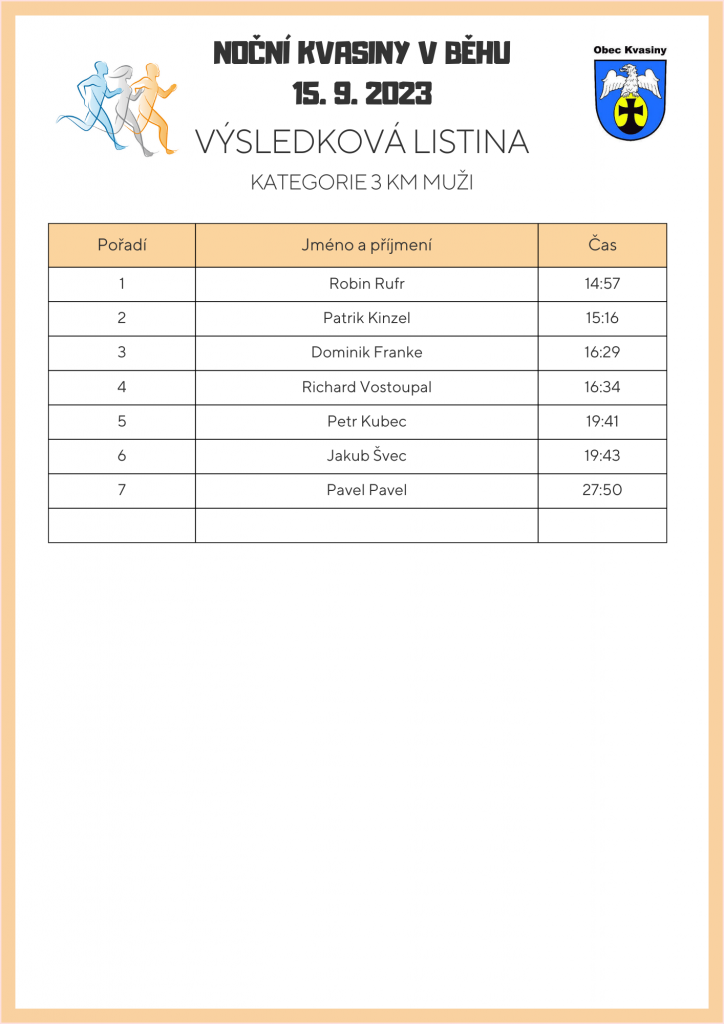 V pátek 15. září v podvečerních hodinách proběhla před kulturním domem sportovní akce s názvem „Noční Kvasiny v běhu“. Letošní ročník byl ve znamení čelovek.