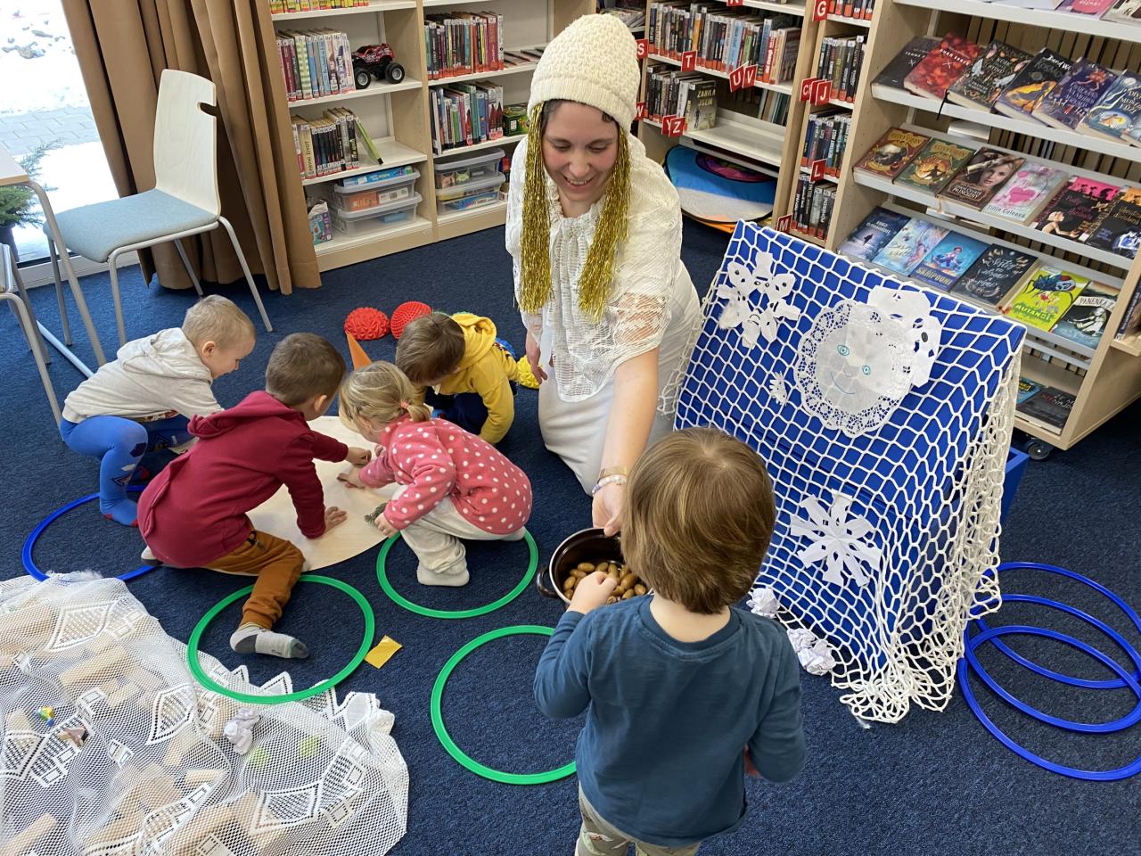 Knihovna přivítala malé děti z mateřské školy a také paní Zimu, která nás navštívila v podání paní Neuwirth. Děti si povídaly na téma zima v přírodě, zimní počasí, zvířátka v období zimy i zimní radovánky. Stavěly v knihovně sněhuláka, zpívaly písničky a vybarvovaly obrázky. Na konec si poslechly zimní pohádku z knížky Zimní knížka pro Lucinku.