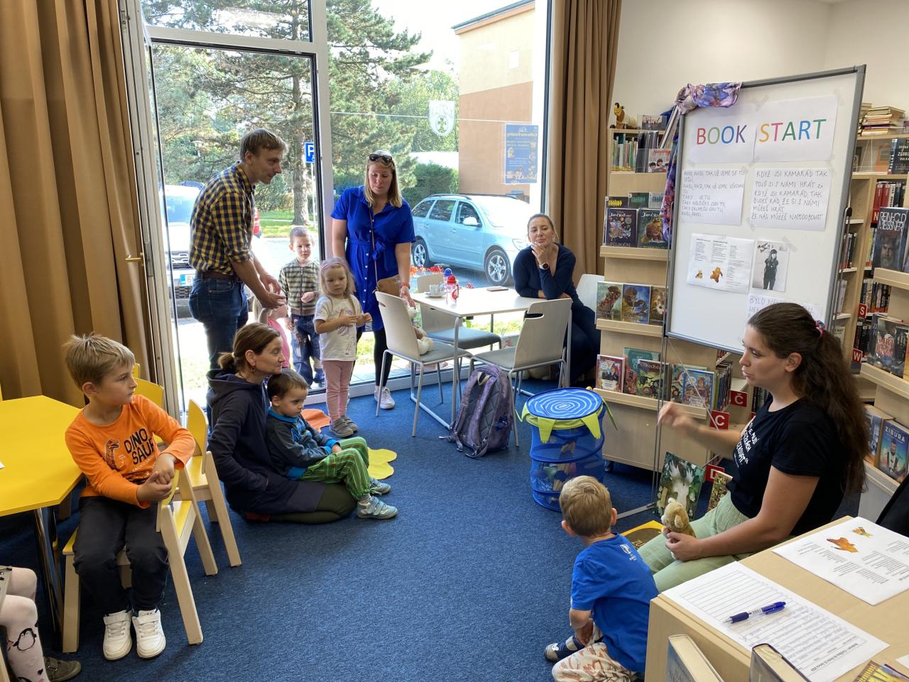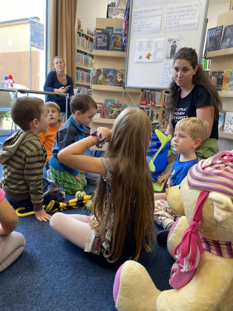 Bokkstart nebo-li s knížkou do života pro děti ve věku 3 – 6 let se uskutečnil již podruhé v letošním roce v knihovně. Během setkání se rodiče se svými dětmi vypravili do pohádkových knížek Medvěd nechce spát a Zubr si hledá hnízdo. Interaktivní vyprávění příběhu o medvědovi, který nechce jít na podzim ulehnout k zimnímu spánku nám podala paní Miriam, nebo-li Matka na třetí. Děti plnily úkoly v parku, kreslily obrázky a zpívaly písničky za doprovodu kytary. Závěrem si děti pochutnaly na ovocné svačince, stejně jako se medvěd musí vydatně najíst před zimním spánkem.
