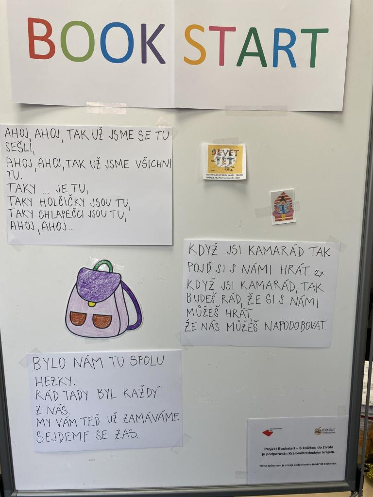 Bookstart nebo-li s knížkou do života je celostátní projekt knihoven na podporu a vzdělávání a čtení dětem dětí od nejútlejšího věku. Knihovna přivítala v odpoledních hodinách jedno červnové odpoledne rodiče s dětmi ve věku od 3 do 6 let, kteří se seznámili se čtením pro malé a předškolní děti. Přivítání a seznámení proběhlo nejprve v knihovně a potom jsme se všichni přemístili do parku, kde byl pro děti připraven zábavný program podle knihy Devět tet jde na výlet v podání Ing. Miriam Neuwirth. Děti se vydaly na výlet a vyzkoušely si různé dopravní prostředky v parku, zazpívaly písničky a také na svém putování dodržovaly pitný režim a občerstvily se ovocem.