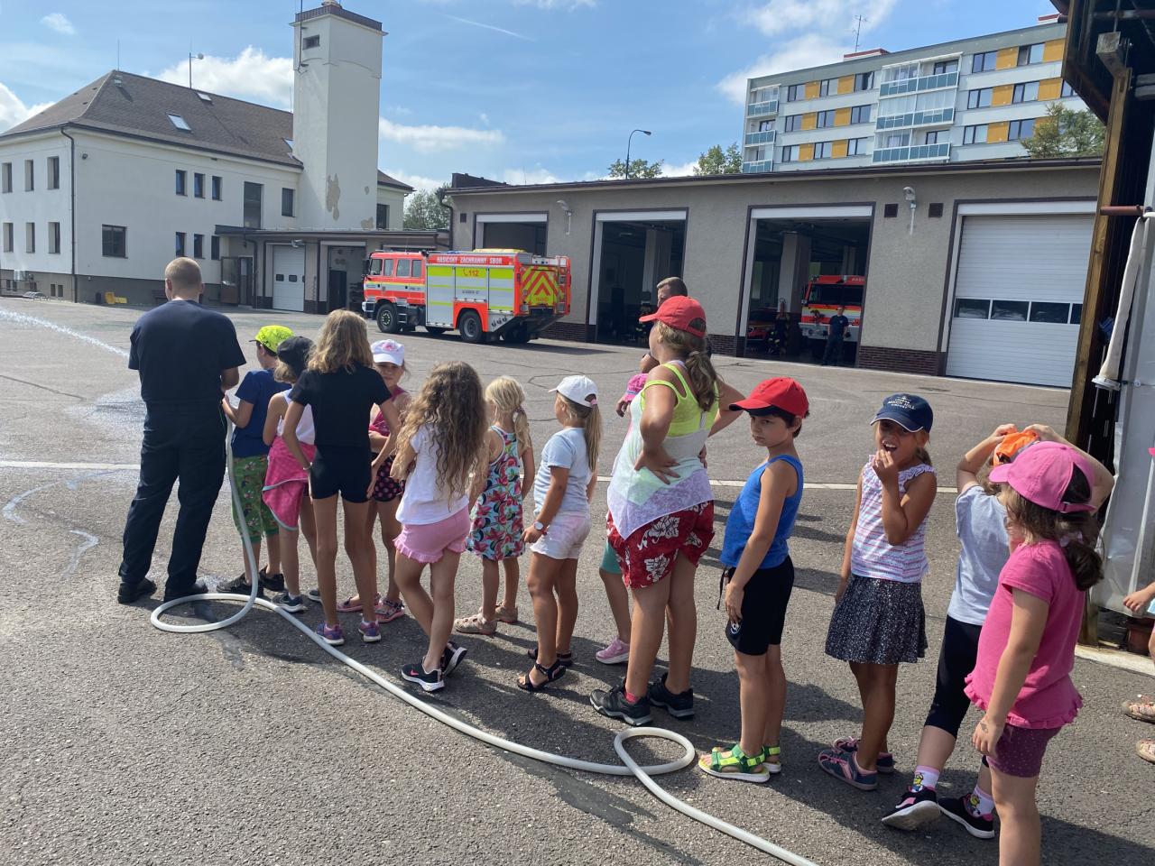 Druhý srpnový týden se v knihovně konaly letní prázdninové aktivity pro děti. Každý den ráno jsme se sešli a vyráželi společně na výlety po okolí, soutěžili, hráli hry, sportovali, vyráběli a tvořili. Prošli jsme si část Kačenčiny stezky po okolí Deštného v O.h., shlédli jsme kynologickou ukázku skvělých borderkolií u obecního rybníka a děti si zkusily podobně překážky jako psi. Prošli jsme si Včelí stezku v zámeckém parku a ve velkém horku se ochladili v bazénu. Autobusem jsme zavítali k hasičům do Dobrušky, kteří si pro nás připravili ukázky činnosti své práce, do které samozřejmě zapojili i děti. Nakonec nechybělo stříkání vodou z hadice a došlo i na naše ochlazení, které jsme si náramně užili! Závěrem prázdninových aktivit jsme navštívili skanzen v Uhřínově p.D. a zavítali do období středověku. Pan archeolog Bohumír Dragoun nás zavedl do období, ve kterém si děti mohly zkusit umlet mouku z obilí, mačkat a česat len na výrobu přádla, tkát na tkalcovském stavu, střílet z luku, krmit a dojit kozy nebo péct placky v peci. Dozvěděli jsme se mnohé zajímavosti, jak lidé tenkrát chudě žili, jak se stravovali a jaké oblečení nosili. Nakonec jsme si opekli buřty na ohni a zakončili tak naše úžasné prázdninové putování a poznávání! Aktivit se celý týden účastnilo 16 dětí!