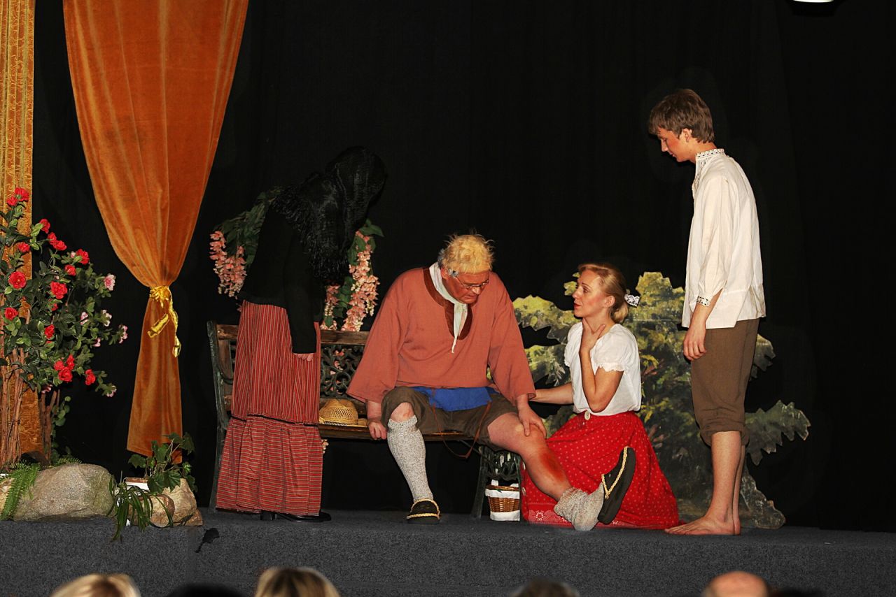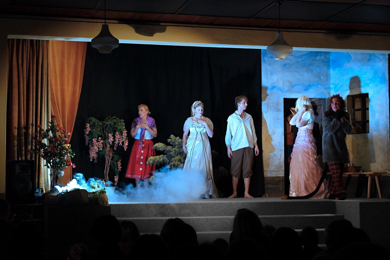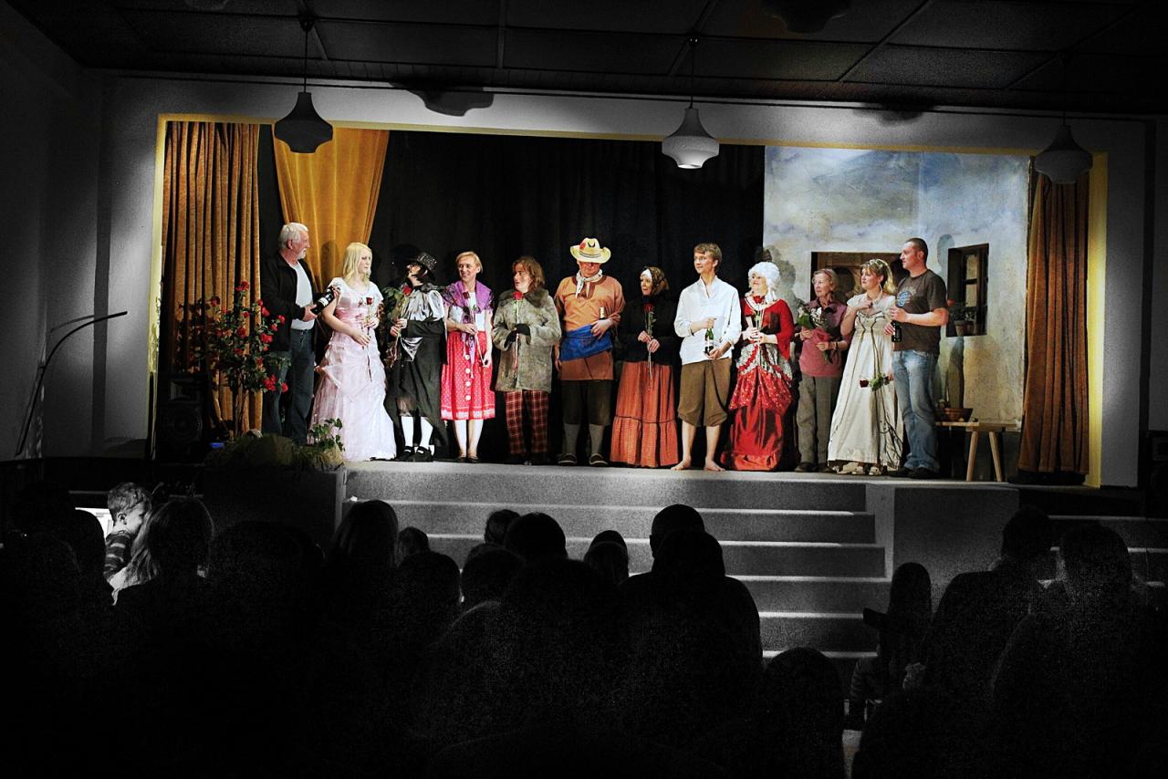 Na jedné ze schůzek kulturní komise jsme se dohodli, že se pokusíme nacvičit divadlo sami! Mrzelo nás totiž tenkrát, že když pozveme nějaké ochotníky z okolí, tak nakonec zpravidla přijde jen pramálo diváků. A to je nepříjemné nejen pro nás pořadatele, ale také pro herce. Pro poloprázdný sál se nehraje nejlépe. Tak jsme si řekli: „ušetříme“, něco pro Kvasiny uděláme a ještě si to sami užijeme! Co na tom může být? To zvládneme! V pohádce Zkoušky čerta Belínka jsem hrála jako školačka ve Skuhrově nad Bělou pod taktovkou pánů Nedomlelových. A tak jsem scénář „hodila do placu“ a začali jsme nacvičovat - jen tak sami bez režiséra. Ale ouvej, zjistili jsme, že to asi nepůjde … A tady se musím poprvé zastavit a poděkovat paní J.Krucké, která se nás tenkrát ujala a nasměrovala naše nesmělé a neohrabané první krůčky správnou cestou. Dá to práci, než se taková pohádka o třech dějstvích nacvičí … To je hodin zkoušek, učení se textů, shánění kulis a kostýmů! Ale když je dobrá parta, tak se zkoušení promění v příjemné setkávání a zažije se spousta legrace. Na každou další zkoušku se těšíte. A právě při shánění kulis jsme narazili na našeho režiséra Míru Daňka. Paní Krucká již nemohla z rodinných důvodů režírovat a předala Mírovi štafetu. Ten naši pohádku dovedl až k premiéře. Také jemu patří velké díky. Byla to pro něj pořádná fuška, kočírovat takovou bandu, ale námaha se vyplatila! Několikrát „vyprodaný“ kvasinský kulturák byl nejlepší odměnou za naše snažení. A potlesk, ten je prostě k nezaplacení …
