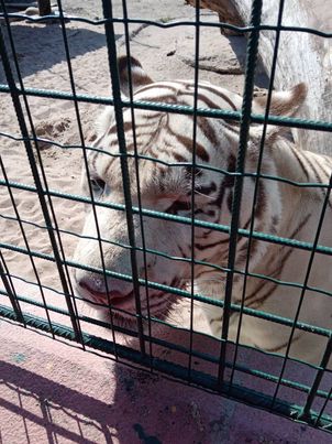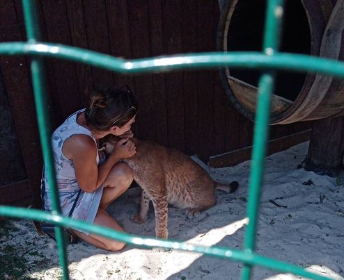 Na začátku nás seznámila se vznikem a historií jejich malé zoologické zahrady, ve které chovají již od roku 2000 kočkovité šelmy. A pak už nás vodila od jednoho výběhu ke druhému a o každém zvířeti zajímavě povídala. Viděli jsme, jak se přátelsky zdraví s bílými tygřicemi, jak se mazlí s rysem ostrovidem, pusinkuje geparda, krmí rukou tygří sestry, rozplývá se nad bílými lvíčaty a přes mříže hladí statného tygřího samce. Atmosféra v této minizoo na nás udělala skvělý dojem. Na šelmách je vidět, že se mají dobře, nic jim neschází a majitelé se o ně pečlivě a s láskou starají.